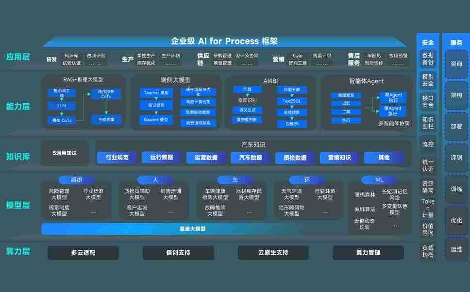 端到端的一站式AI工作空间深度融合了从企业战略规划到日常经营的全流程业务板块,,,,定向解决车企内部领域多、、、部门多、、、、链条长、、、、场景碎片化等难题,,,支持车企快速构建以AI为核心的生产力写作体系,,,,实现任务执行与AI能力的无缝集成与交互