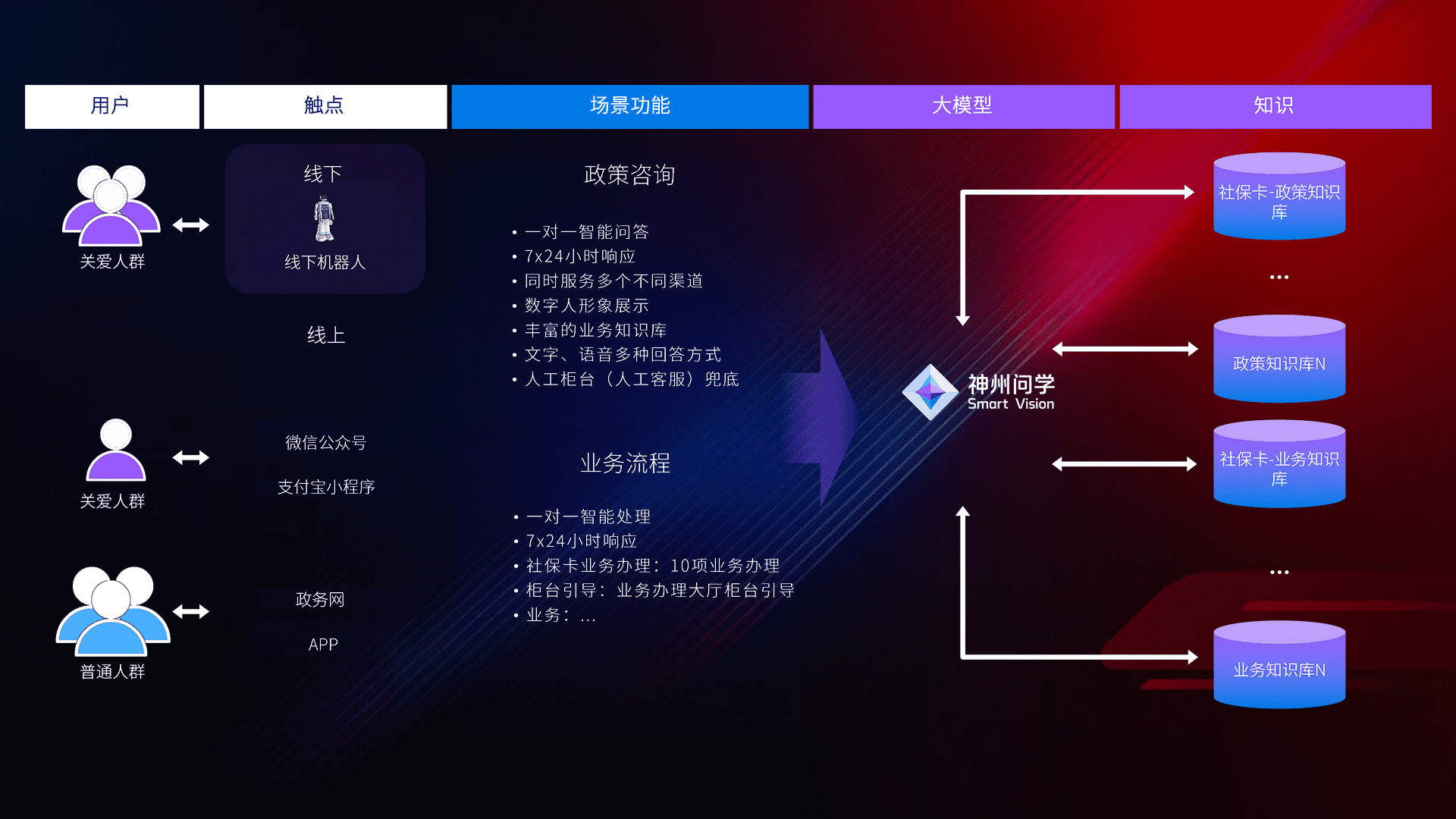 在服务大厅部署客服机器人,,,在线上应用和小程序配置客服数字人,,,724小时为群众解答常规问题,,,客服机器人无法处理的,,转现场人工处理。。